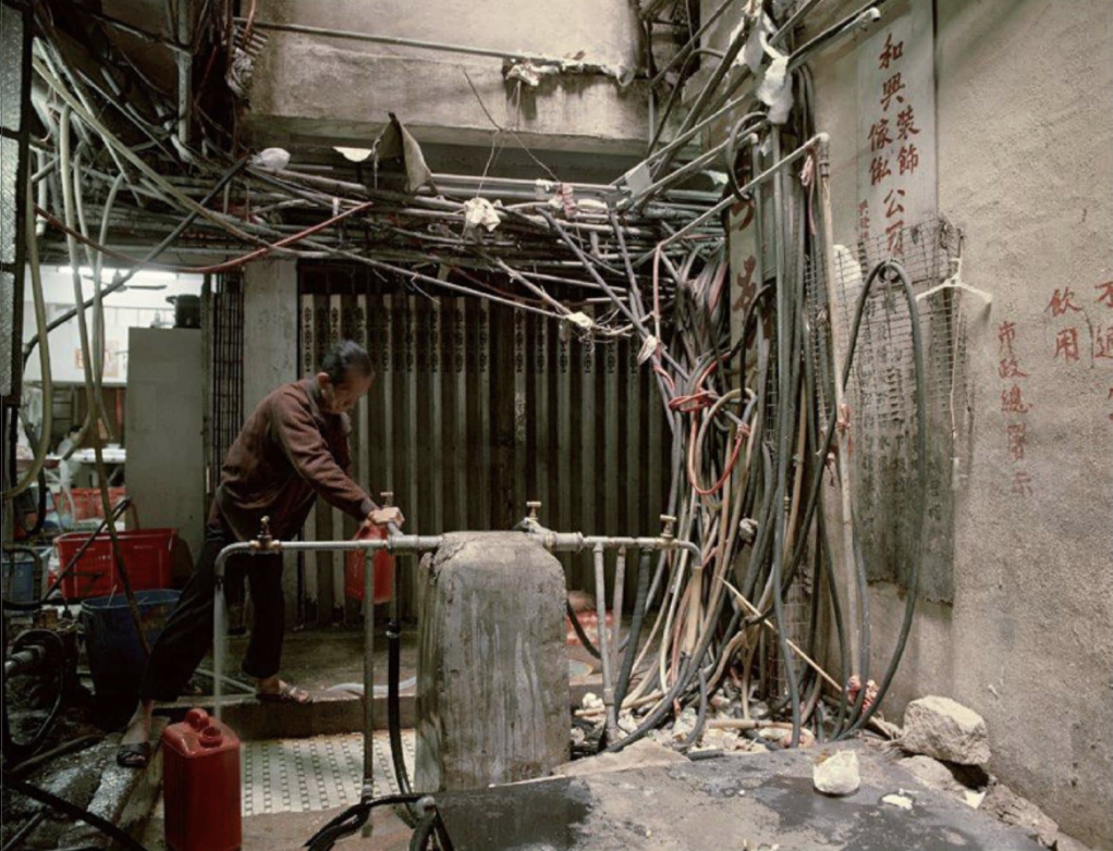The Walled City’s staggering density didn’t crop up overnight. Original buildings were residential complexes constructed on the principles of squatters’ rights. Humble two to three storey structures were hastily laid out in the 1960s as more people flooded the lawless enclave. “Practical chaos” comes to mind. With no governmental or architectural oversight, the interior was a visual barrage of bare wires, too-narrow passageways, improper ventilation, and a handful of standpipes that supplied all of the city’s water.